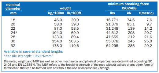6 strand wire/fibre combination rope with independent steel core and white marking yarn. The galvanized strand wires are covered by blue polypropylene yarns. Mainly used as tanker mooring rope.