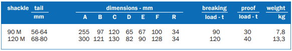 Stainless steel mooring shackle with sleek shape designed to pass through fairleads. Available in two sizes 90 M and 120 M.